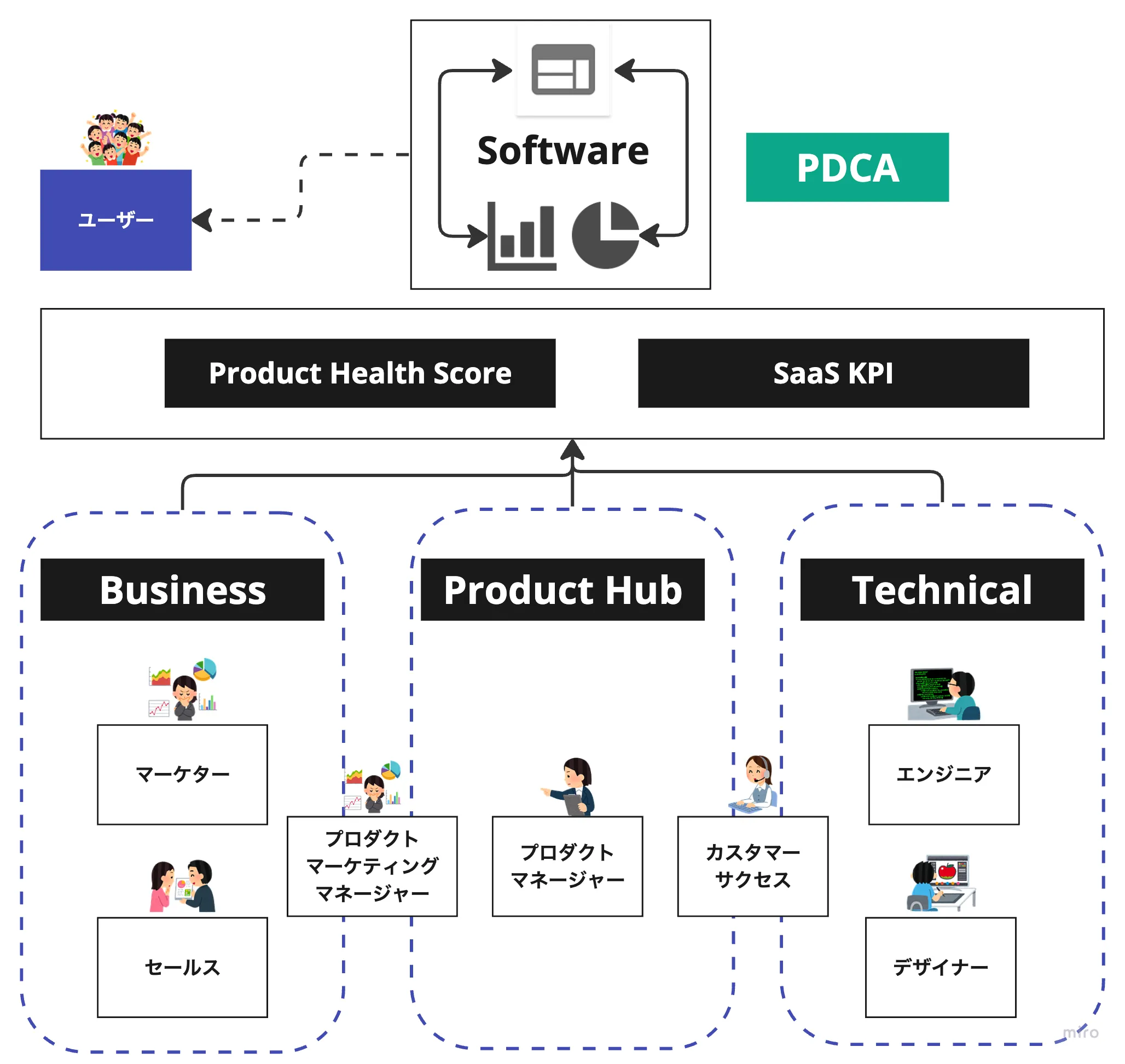 ビジネスと製品開発部門の調整をして 「SaaS ビジネスモデルの成功」に責任をもつ役割です。